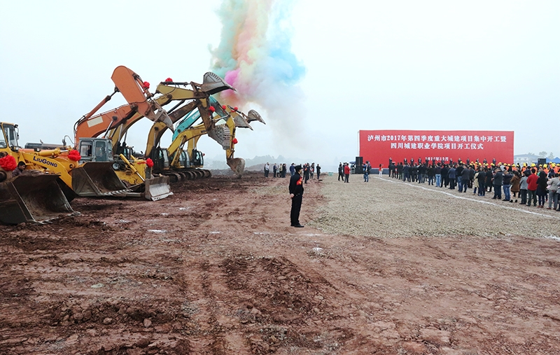 四川在線瀘州消息(劉健 姚艾青) 10月27日,瀘州市2017年第四季度重大城建項(xiàng)目集中開工儀式在龍馬潭區(qū)四川城建職業(yè)學(xué)院項(xiàng)目現(xiàn)場舉行。